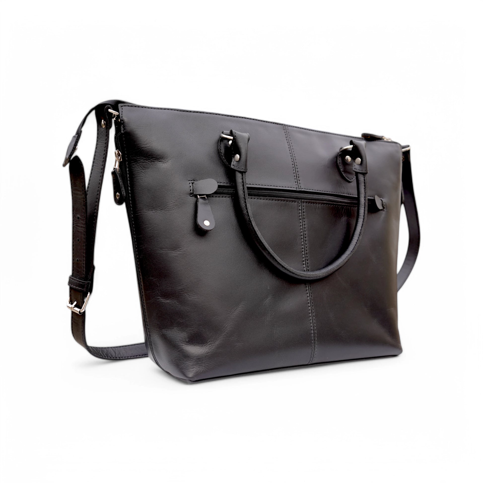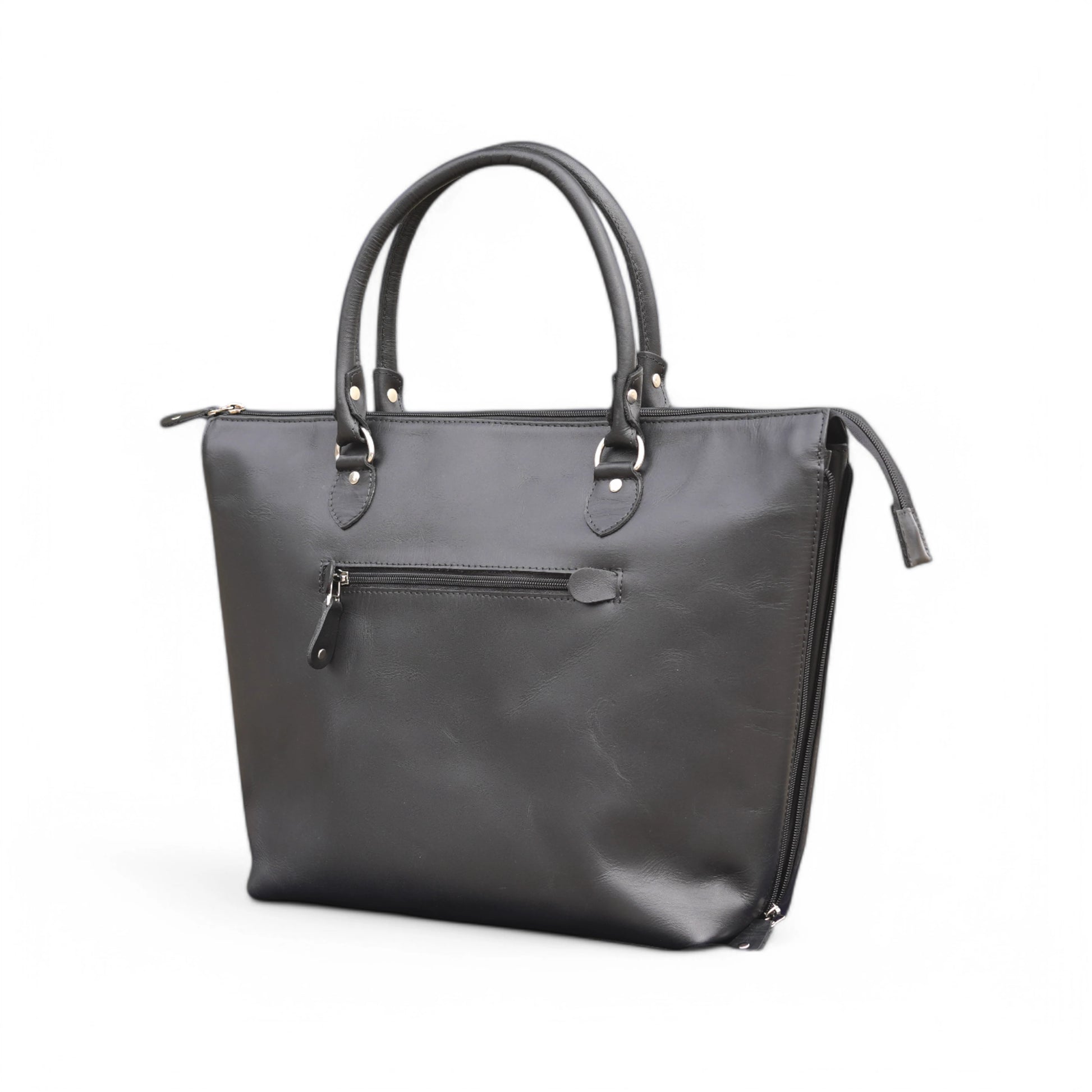 At Eastern Hides, we believe in quality craftsmanship. This black leather tote bag is meticulously handcrafted to ensure durability and longevity. The strong stitching, reinforced handles, and high-grade leather make it a reliable choice for years to come.